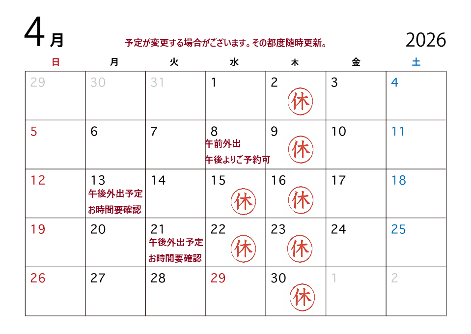 4月定休日その他スケジュール